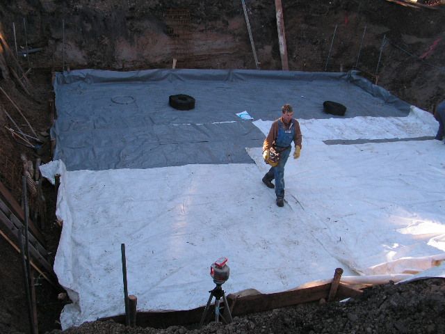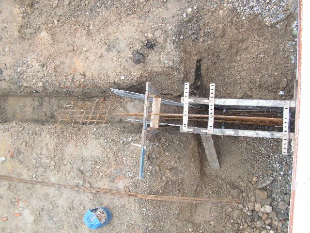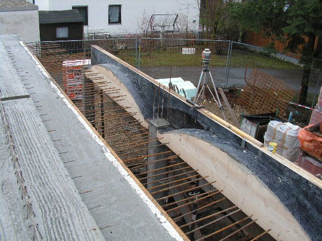 Die Randschalung ist fertig, Folie ausgelegt. Es fehlt noch das Erdungsband. Bewehrung wurde nur unter der Tragwand eingebaut. Die eigentliche Bewehrung wird |