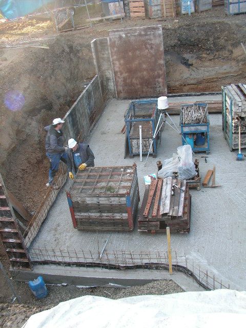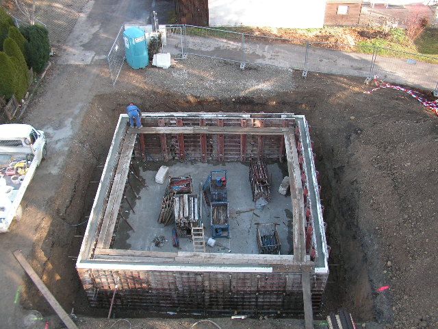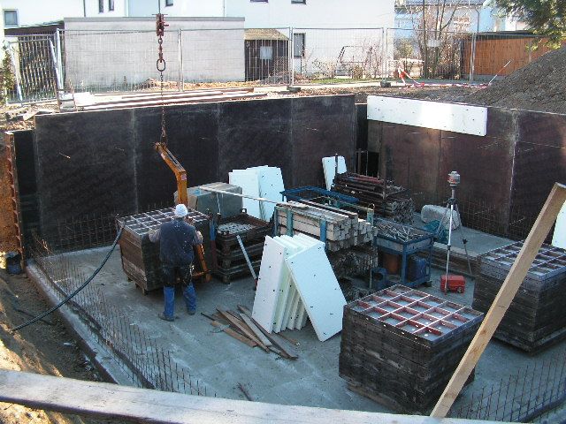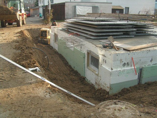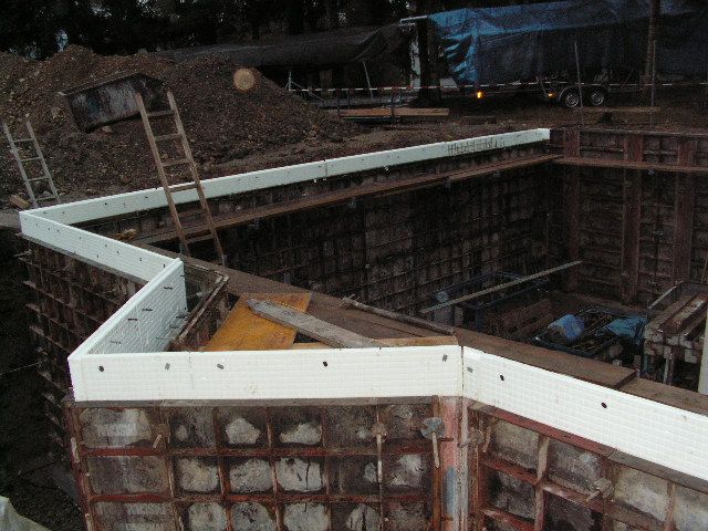 Hier die fertig geschalte Kellerwand mit eingebauter Außendämmung |