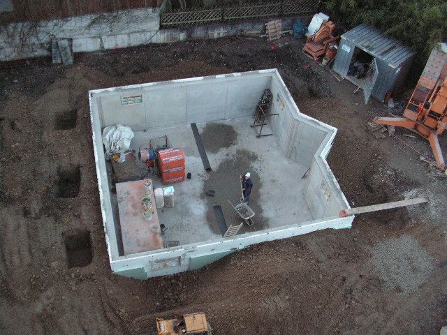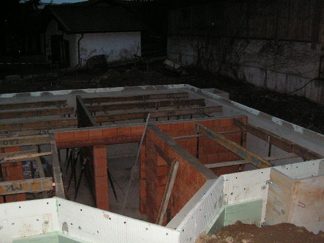 Die Wände sind fertig und das Bockgestell steht. Die Filigrandecke konn aufgelegt werden. |