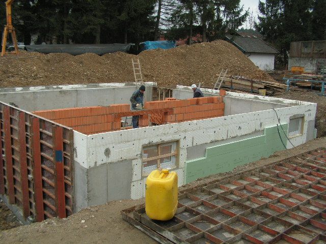 Die Zwischenwände werden im KG gemauert und die Dämmung an die Kellerwand geklebt. |