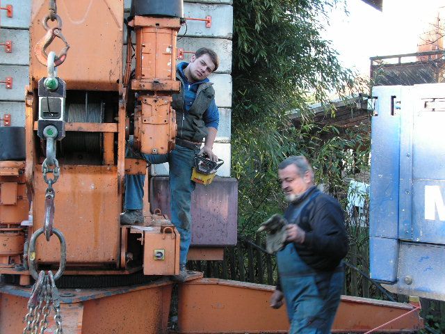 Vater und Sohn Zenz, die den Kran so aufstellten, das man beide damit bauen kann. |
