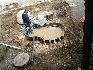Für einen Vorgarten wurde ein Wasserbecken für Springbrunnenbetrieb erstellt. |