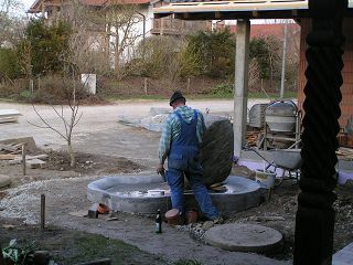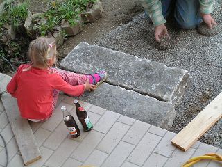 Die Gartenwege werden mit alten Leistensteinen ausgelegt. |
