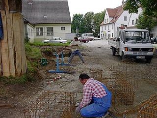 Baustahl biegen und flechten; Schnurgerüst erstellt |