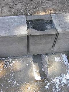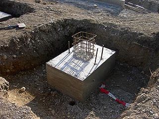 Streifenfundament auf den Einzelfundamenten mit Aussparungen. |
