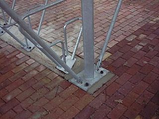 Der Stützfuß erfüllt hier eine Dreifachfunktion. Das Vierkantrohr trägt die Dachkonstruktion. Statischer Knotenpunkt für die Stabilität. Zu guter Letzt auch noch als Entwässerungsrohr für das Dach. Deshalb mußte das diagonal gesetzte Vierkantrohr unter der Fußplatte rund werden. An dieses runde Rohr wurden KG-Bögen angebaut, die mit der Abwasserleitung verbunden wurden. Schwierigste Phase war hier die Montage. In den Fundamenthälsen mußte auf engstem Raum das Abwasserrohr angeschlossen werden.