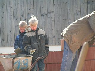 Die Kinder waren begeistert, das sie den Kran-Stellplatz rütteln durften. Mit vereinten Kräften ging es schon. |