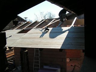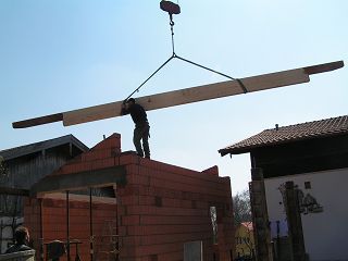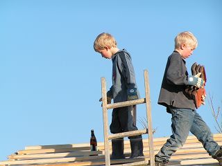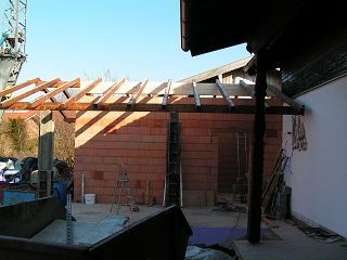Nach den "Brauchtumsverhandlungen" konnte der Dachstuhl weiter gebaut werden. |