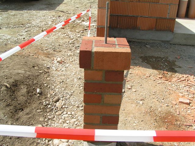Für die Holzstütze an einer Überdachung haben wir dann noch zwei Pfeiler gemauert. In Höhe und Aussehen sind sie den Elypsen angepasst. | |