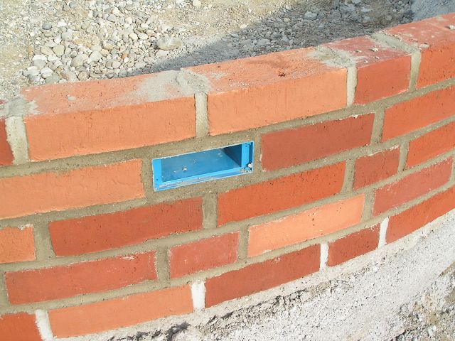 Auf die Mauerkrone wurde als Abschluß eine Rollschicht gemauert. Diese steht aus optischen Gründen 3 Zentimeter über. | |