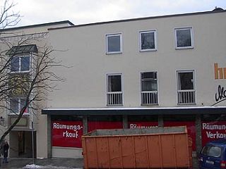 Der Urzustand vor dem Umbau. Der Container steht schon bereit, damit man das alte Inventar entsorgen kann. Arbeitsbeginn war nach den Weihnachtsfeiertagen 2001. | |