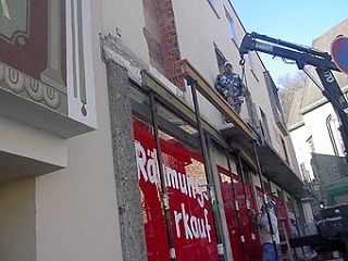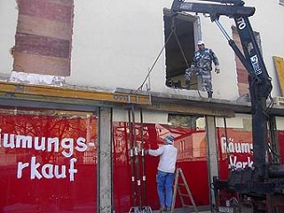 Der balkonartige Überbau wurde in mehreren Teilstücken abgebaut. | |