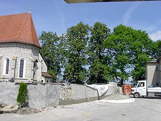 Als zweckmäßigste und günstigste Lösung wurde das entfernen der Bäume angeordnet. An deren Stelle sollen mit einem größeren Abstand zur Mauer wieder große Bäume gepflanzt werden. |