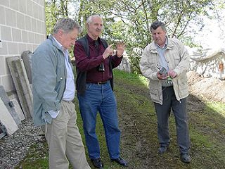 Vorstand Pfarrgemeinderat Korbinian Obermaier, Architekt Helmut Mück, Fachberater Hydroment Adolf Pöschl | |