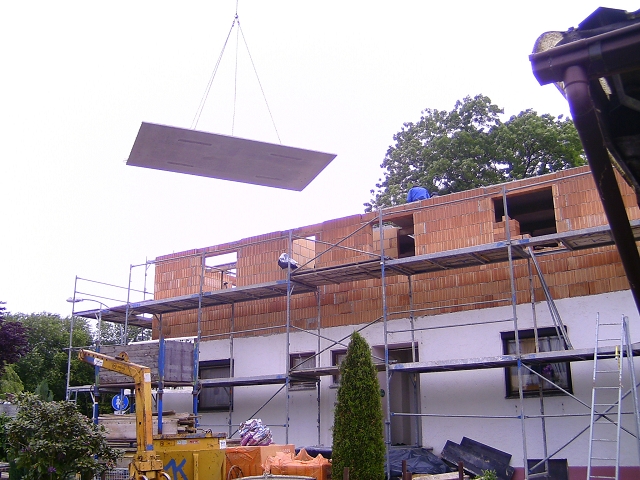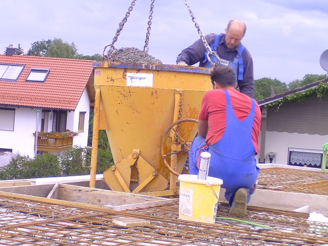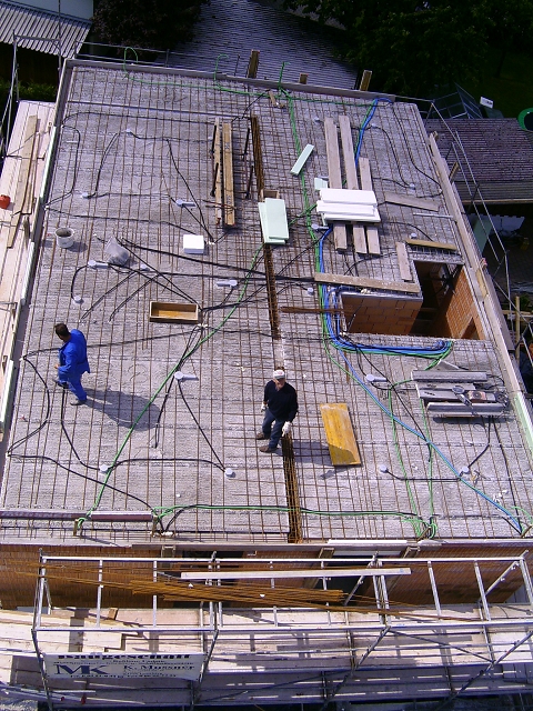 Nach nur einer Woche war dann schon die Filigrandecke drauf. Als diese dann betoniert war hätte uns ein weiterer Regenguss nichts mehr anhaben können. | |