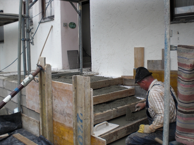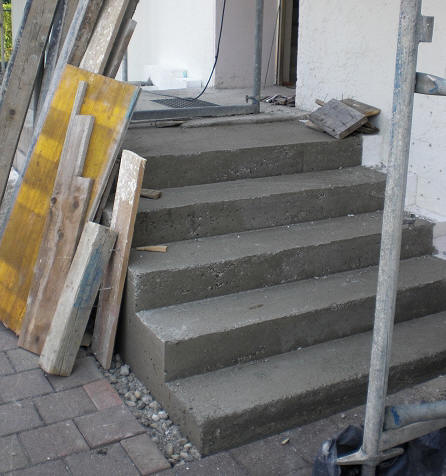 Der Eingangsbereich wird auch neu gestaltet. Später wird er als Windfang abgemauert und überdacht. |