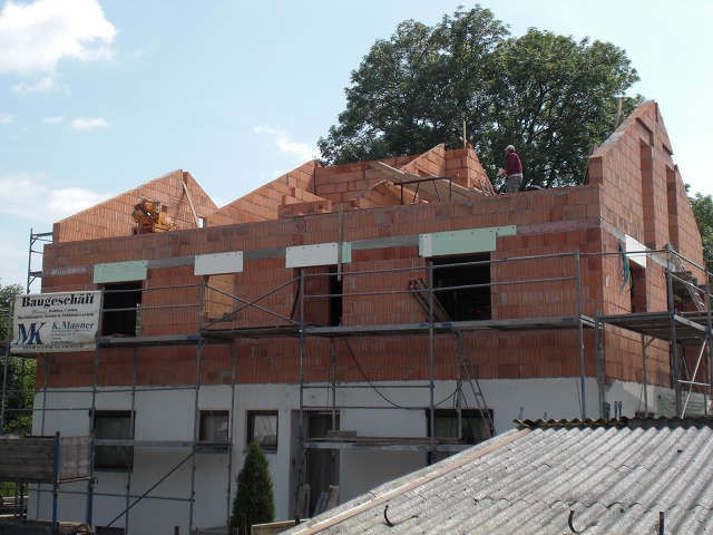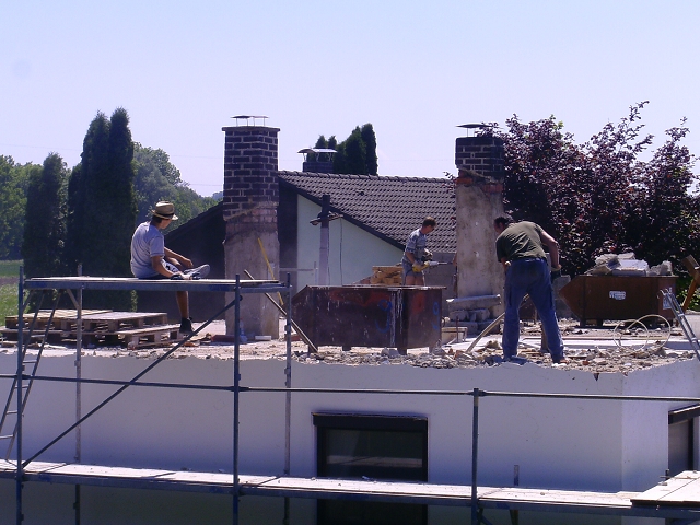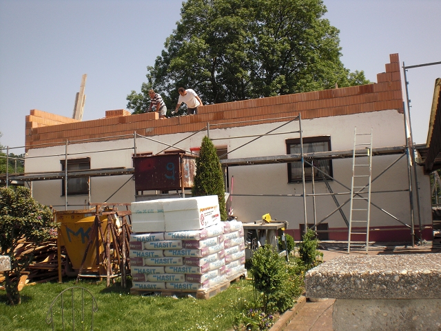 Zum Dachstuhl und Giebelwände abbrechen sind einige Nachbarn zum helfen gekommen. Da machte das arbeiten richtig spaß. |