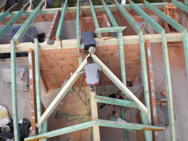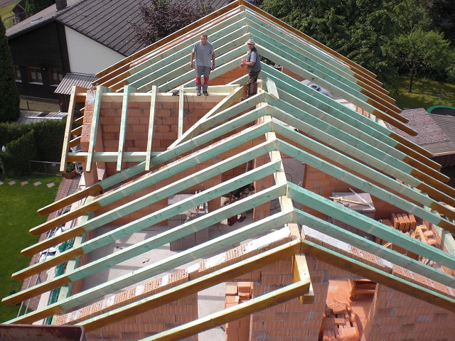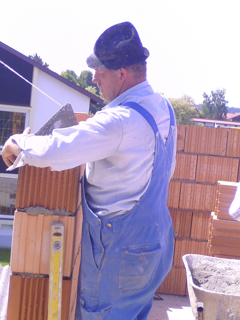 Auch die Zwischenwände sind fertig. Jetzt kann der Zimmerer Bruckeder Gerhard kommen. | |