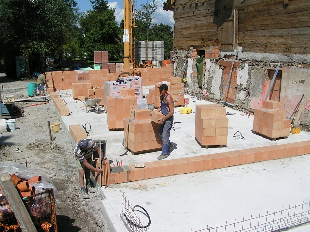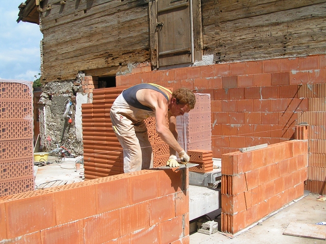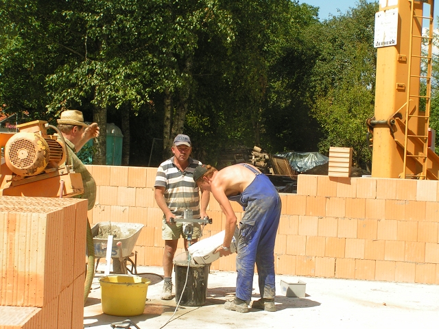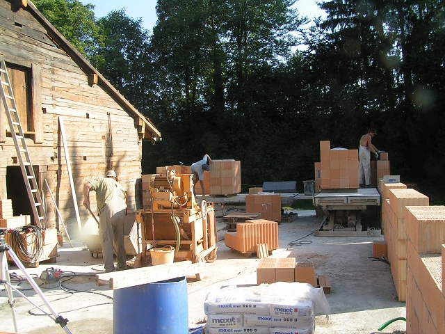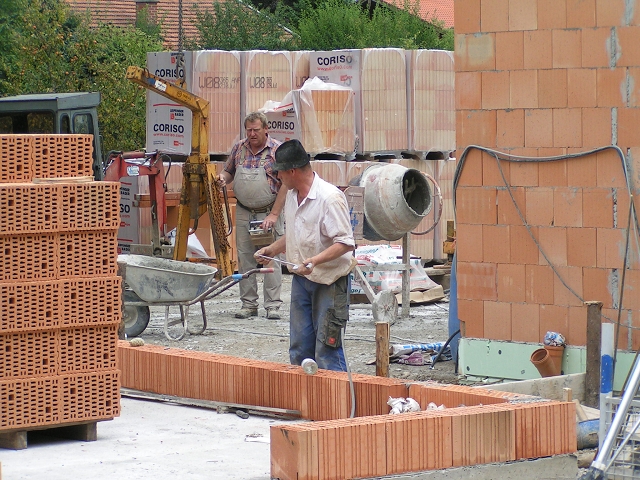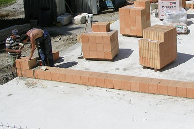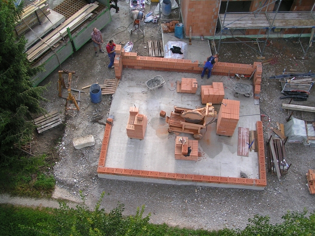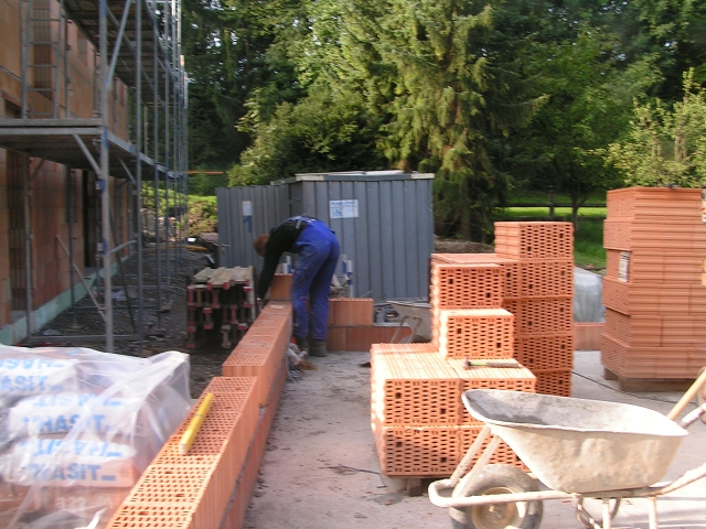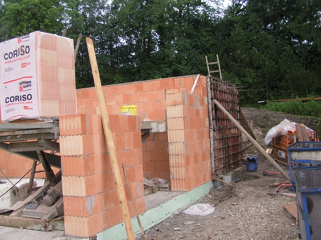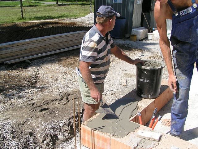 Ja, die erste Schicht passt. Wir haben die Garage mit Kalk - Zementmörtel gemauert weil im Pelletslagerraum erhöhte Druckbelastung erwartet wurde. | |