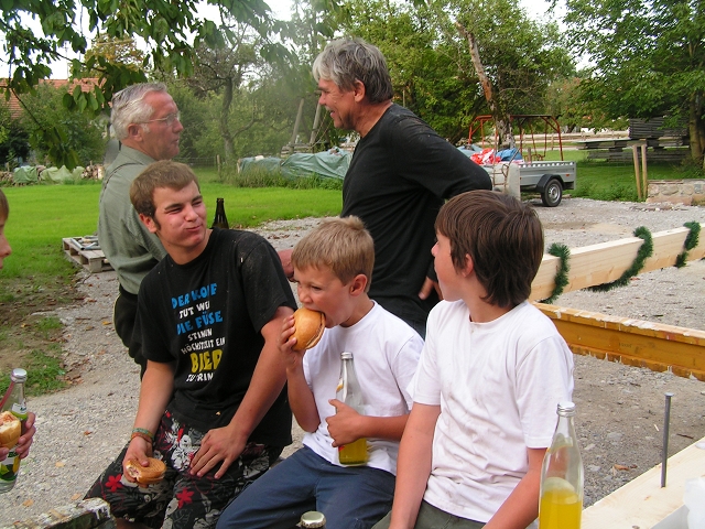 Ein paar Wochen nach der Rohbaustellung haben dann unsere Bauherrn zu einer üppigen Hebfeier eingeladen. |