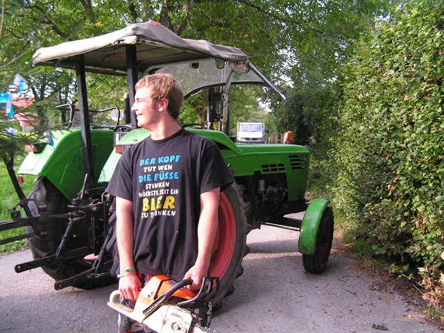 Um den Verhandlungen mehr Nachdruck zu geben holten die Firstdiebe schon mal eine Motorsäge hervor, um den First zu Brennholz zu schneiden. |