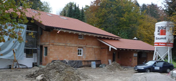 Wir sind nicht nach Amerika gefahren, sondern nach Übersee am schönen Chiemsee. Die Bauherrn Iris und Udo S. haben mehrer Jahre mit dem Landratsamt gekämpft, das sie ein landwirtschaftliches Anwesen anbauen dürfen. Dazu war es nötig ein angebautes Nebengebäude abzureißen. Für den Neubau suchte der Bauherr eine kleine Firma, die auf seine speziellen Wünsche Verständnis haben. Deshalb wählte er uns aus. |