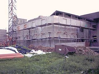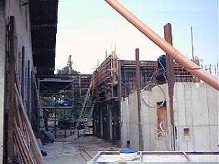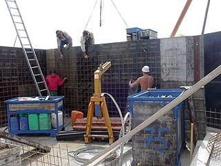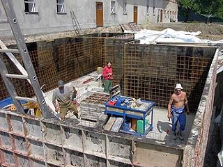 Der Keller wird geschalt, bewehrt und anschließend betoniert. Bei den vielen Ecken und einer schrägen Wand ist die Paschal - Rasterschalung die richtige Entscheidung