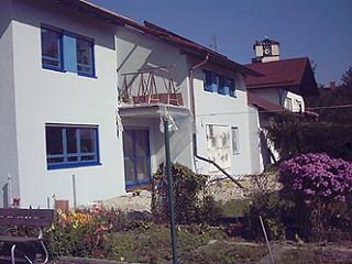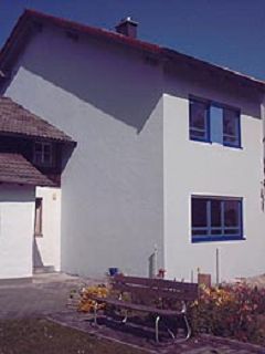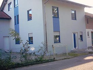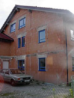 So sah das Haus nach den Putzarbeiten aus. Der Maler hatte mit vorsichtiger Farbgebung noch Akzente gesetzt. | |