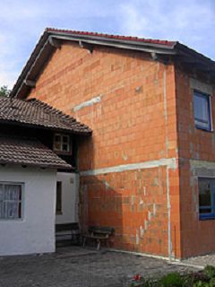 Die Westseite, eine 24 er Kommunwand mit schlechter Wärmedämmung soll einen Vollwärmeschutz erhalten. |