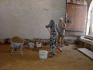 Vom Pfarrgemeinderat wurde der Putz in Eigenregie abgeschlagen. | |