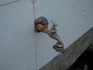 Detail am Wasserhahn, hier wurde mit PU Schaum der Hohlraum verfüllt. |