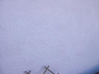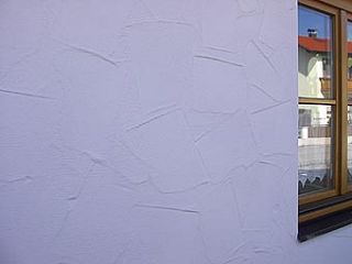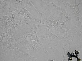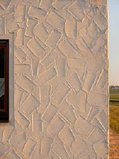 Muster 1: Tiefgezogener Glättkellenzug gewaschelt mit 2mm Hasit 730 Phantasieputz Durch die seitlich Sonneneinstrahlung besonders gut zu erkennen. |
