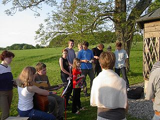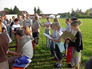 Zahlreiche Jugendliche waren mit Musikinstrumenten gekommen und erfreuten mit ihrem Gesang. | |