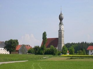 Diesen idyllischen Anblick am 18.5.2002 von meiner Heimatgemeine Oberfeldkirchen möchte ich nicht alleine geniesen. |