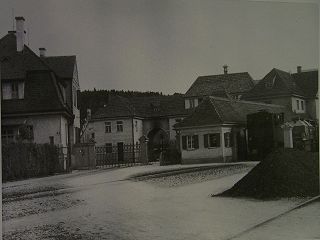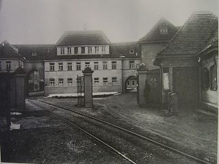 ![]() Der Haupteingang der SKW um 1930, mit Werkmeisterhaus, Lohnbüro und Betriebskrankenkasse |