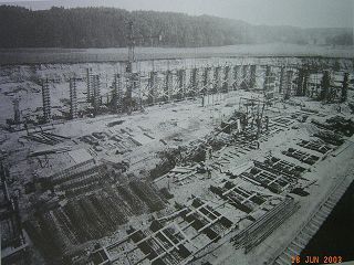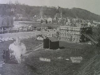![]() Ein Kran mitte oben für die Baumasnahme um 1910 für die SKW war schon eine große Erleichterung. Auch ein zweiter Kran liegt schon bereit. |