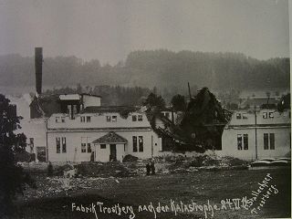 ![]() Am 24.6.1911 gab es bei der SKW eine schreckliche Explosion. Es gab viele Verletzte, aber nur einen Toten zu beklagen. Ein Betonbrocken mit 10 to ist auf eine Wiese geschleudert worden. Sämtliche Fensterscheiben der näheren Umgebung wurden zerstört. |