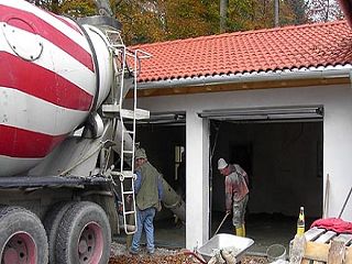 Ein Betonmischwagen liefert die genaue Frischbetonmenge. |