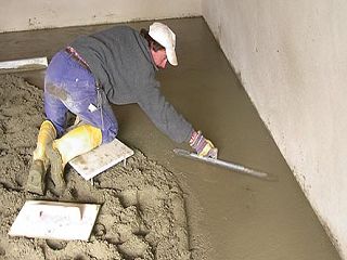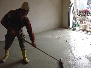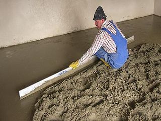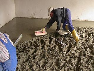 Der frische Estrichbeton wird mit Alulatten eben und mit Gefälle |